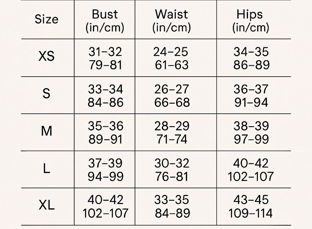 Note: Sizing may vary slightly based on fabric and design. Please refer to individual product descriptions for specific fit guidance.