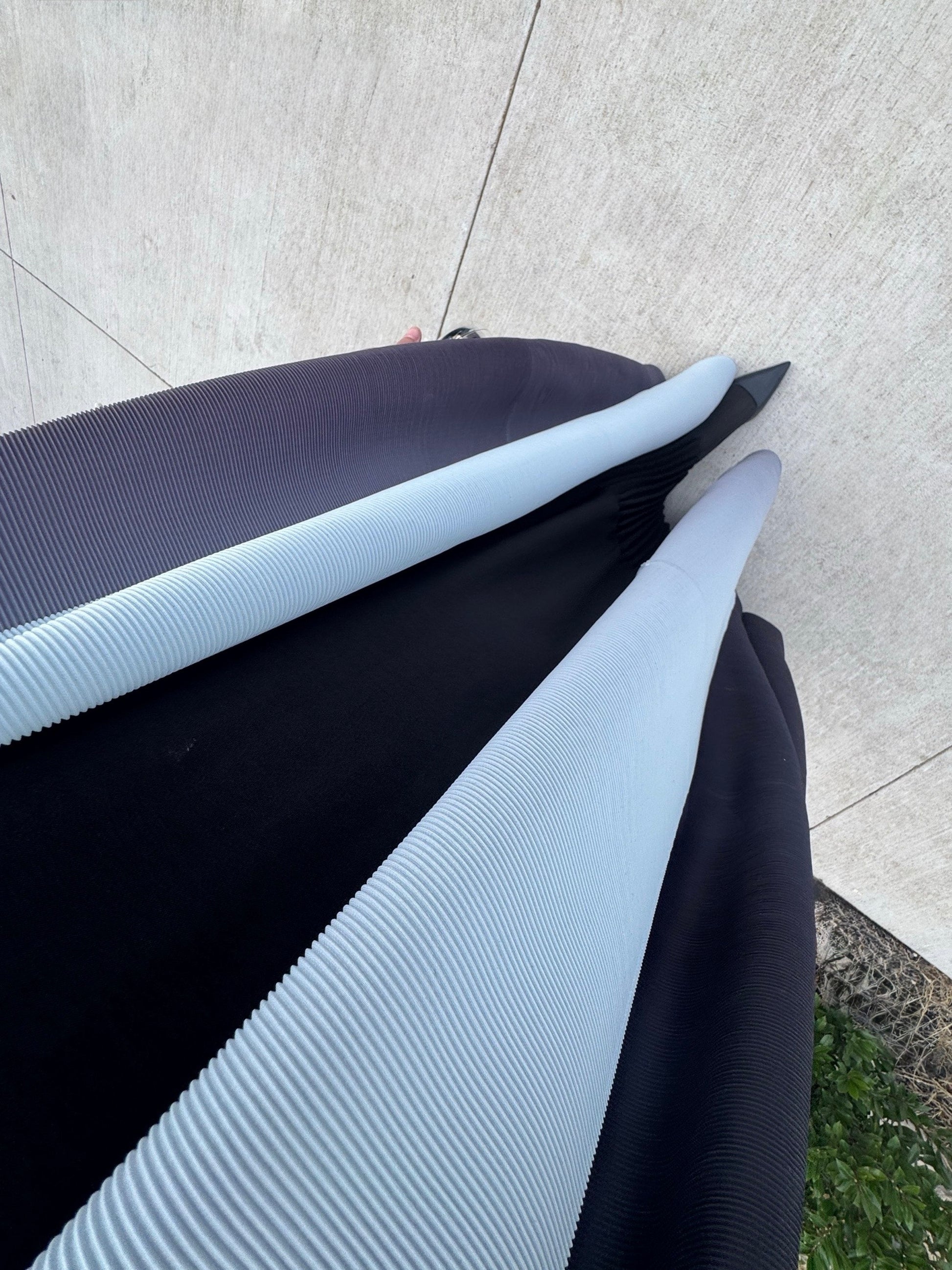 High-quality pleated polyester fiber fabric, chosen for its durability, structured texture, and elegant drape.