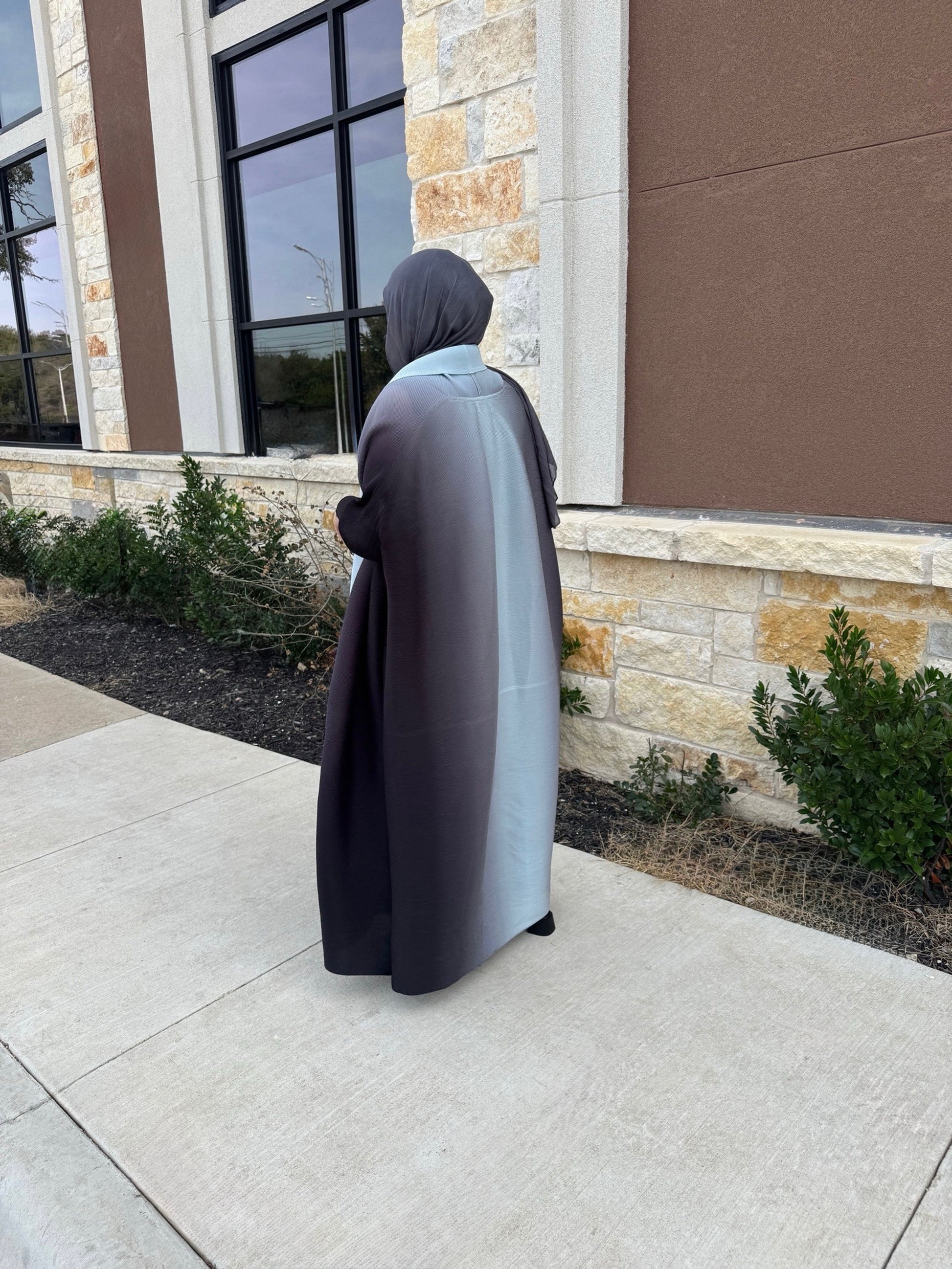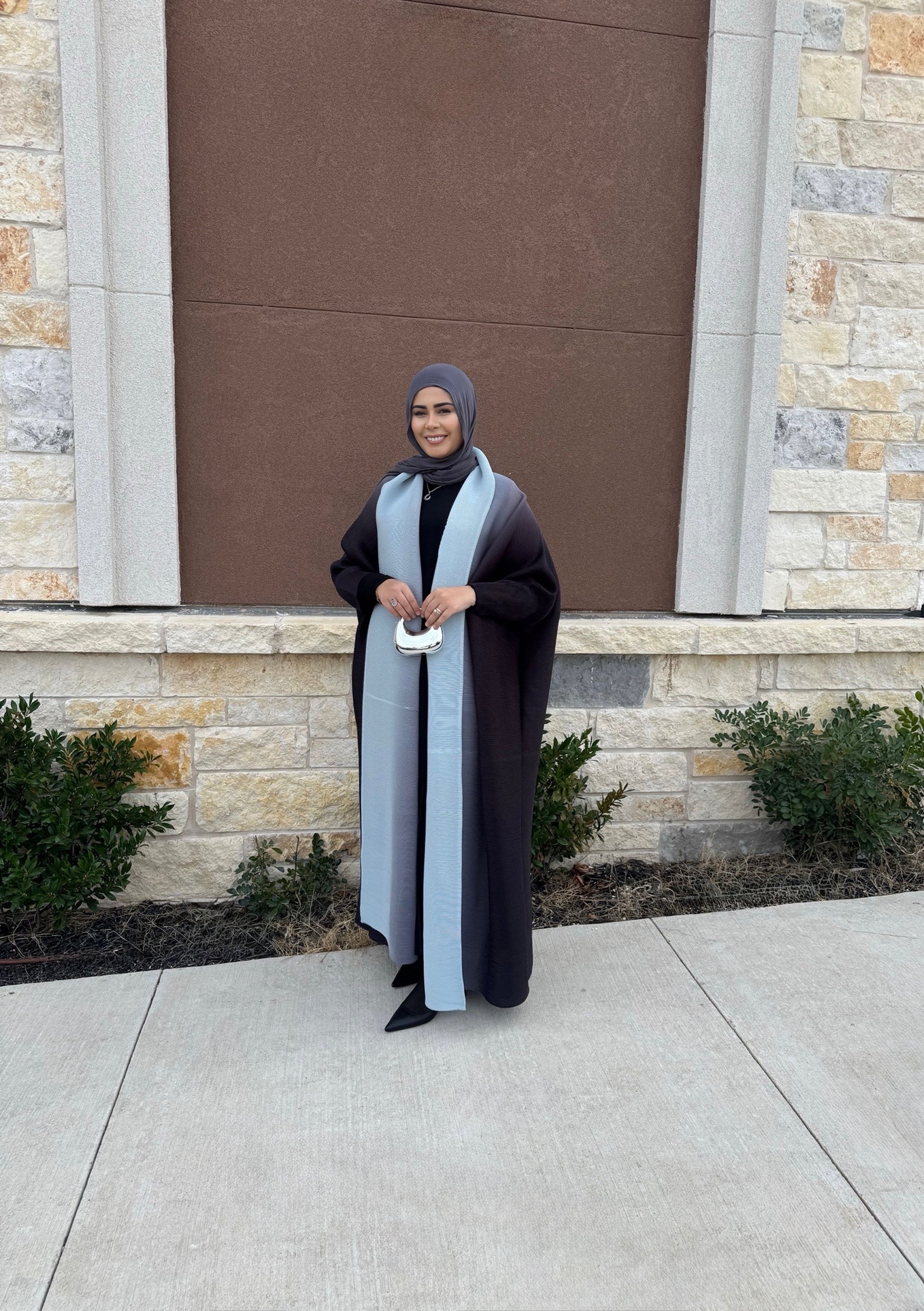 𝐓𝐰𝐢𝐥𝐢𝐠𝐡𝐭 𝐌𝐢𝐬𝐭 𝐀𝐛𝐚𝐲𝐚 features an open silhouette with a soft ombré effect, blending black with deep shades of blue for a refined, modern look.